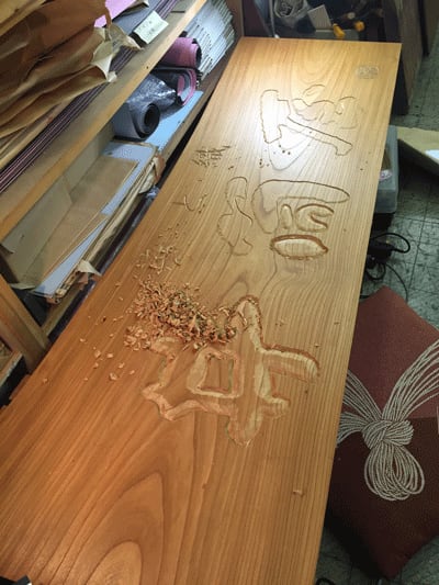 こちらもケヤキの無垢板で大きさ1800×700×50(mm)とけっこう大きめの看板です。